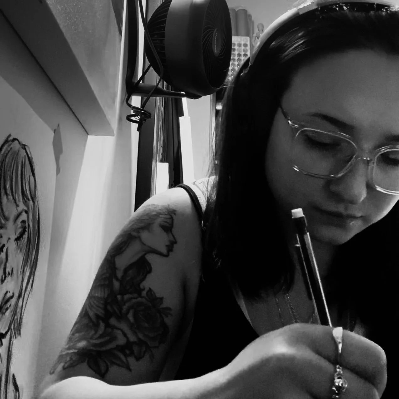 Tatyanna is a self-taught artist based in Canada, whose passion for art is deeply woven into her life. Her creative journey began in childhood drawing imaginative sketches with pen on scrap pieces of paper. At nine years old, she developed an interest in graphite, refining her skills using reference photos. In her twenties, she began selling commissioned graphite portraits and has since built a dedicated daily practice, continually experimenting with various mediums (explored in the gallery).